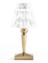 Die innovative Tischleuchte Battery von Kartell kann bis zu sechs Stunden ohne Stromanschluss verwendet werden und ist somit ein perfekter Begleiter für den Abend auf der Terrasse. Designer Ferruccio Laviani arbeitete speziell die facettierte Oberfläche des Schirms heraus, durch die wunderbare Lichtspiele erzeugt werden. Mit Metallic-Gestell wirkt die mobile Leuchte besonders edel.