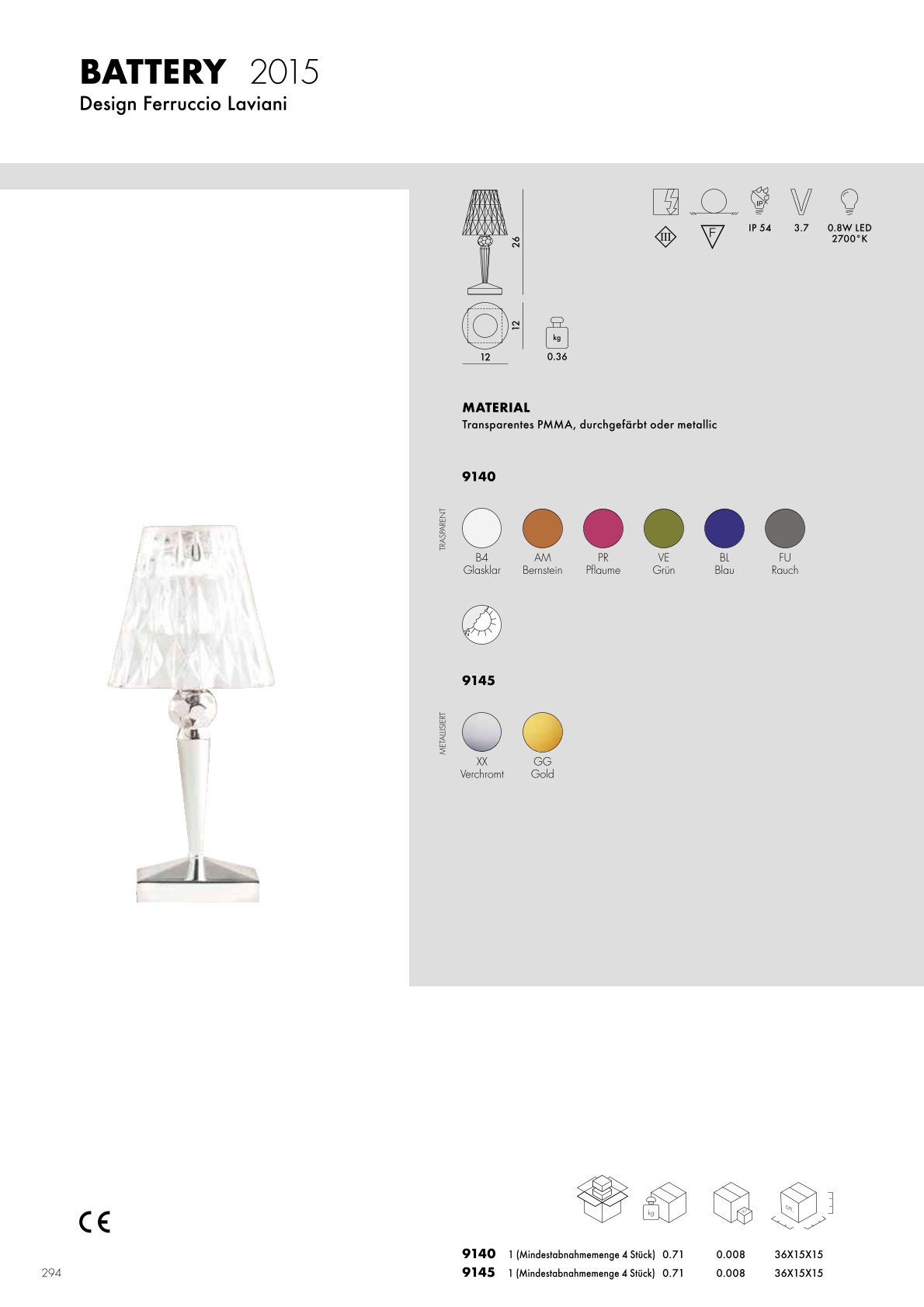 | Zertifikate & Nachhaltigkeit | Schutzgrad IP 54, Isolierklasse III Seit 1996 hat Kartell sein Qualitätsmanagementsystem nach UNI EN ISO 9001 zertifiziert und 2012 hat Kartell außerdem die anspruchsvolle Zertifizierung nach UNI EN ISO 14001 erhalten, die ein wirksames Umweltmanagementsystem nachweist. "Kartell loves the planet": Kartell setzt sich zum Ziel, einen eigens entwickelten Nachhaltigkeits-Code zu verfolgen, mit dem 11 der 17 von den Vereinten Nationen definierten Entwicklungsziele für eine bessere Zukunft erreicht werden sollen. Die Verwendung nachhaltiger Materialien gehört zur Herstellung der Kartell-Produkte bereits zum Standard. Bei der Fertigung achtet der Hersteller gleichermaßen auf die Reduzierung der Umweltbelastung sowie auf eine langlebige Qualität und Ästhetik. |