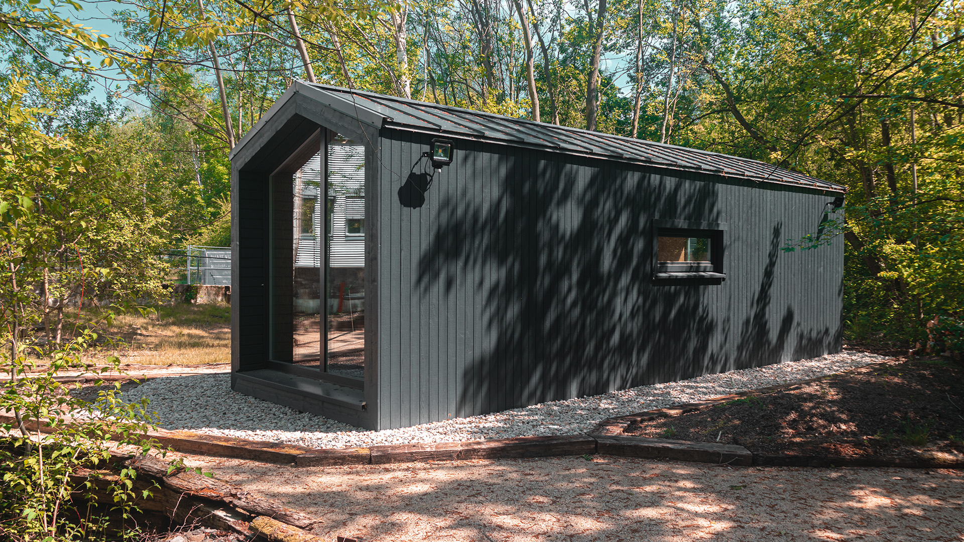 Meeting im Grünen: im smow Garten steht unser gemütliches Tiny House für Beratungen und Brainstormings bereit