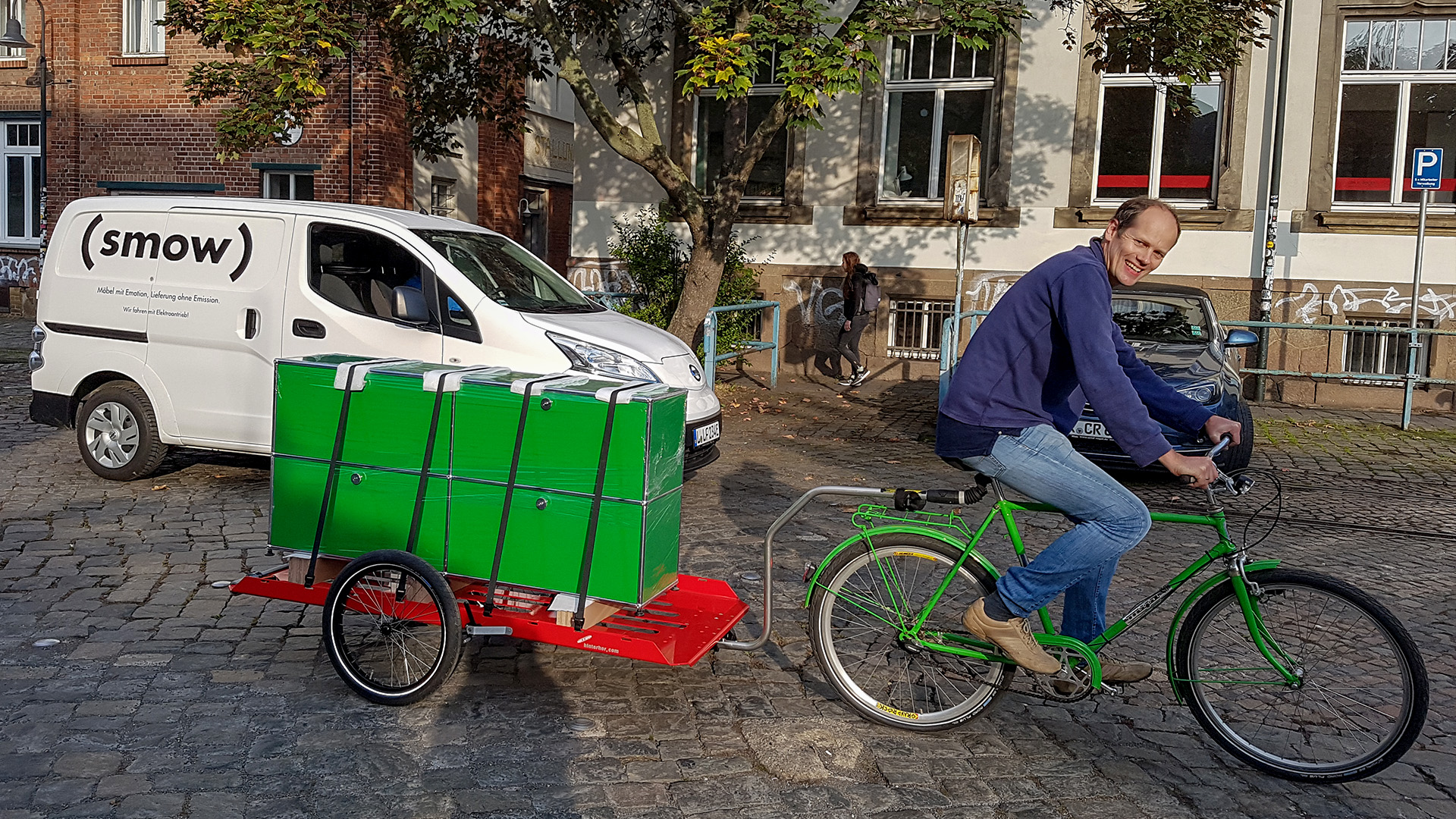 Nachhaltig: auch unser Chef Micha liefert ab und an vielfältige Möbel für vielfältige Menschen aus