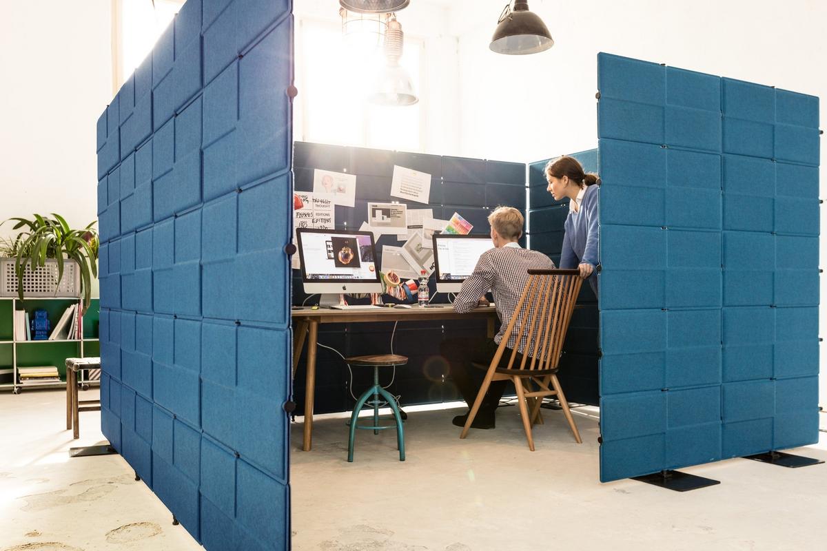 Neben Lichtplanung sowie ergonomischen Bürodrehstühlen und Tischen ist auch die Akustik am Arbeitsplatz ein immer relevanter werdendes Thema, gerade in Zeiten, in denen kleine Bürozellen der Vergangenheit angehören und der Trend zu Großraumbüros und neuen Arbeitsformen wie Co-Working-Spaces geht. Es ist wichtig, Bereiche, in denen viel telefoniert oder miteinander kommuniziert werden muss, akustisch von solchen Bereichen abzuschirmen, in denen hochkonzentriertes Arbeiten erforderlich ist. Akustikpaneele wie die USM Privacy Panels, aber auch geschickt ausgerichtetes Mobiliar können hier Abhilfe schaffen. Darüber hinaus ist es wichtig, ausreichend Besprechungs- und Konferenzräume sowie Ausweichorte zum Telefonieren zu schaffen, um produktives und entspanntes Arbeiten für alle Mitarbeiter zu gewährleisten.
