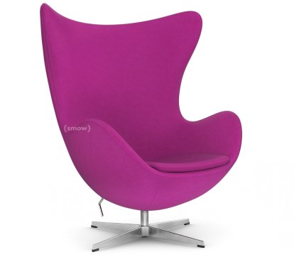 Der Egg Chair, 1957 von Arne Jacobsen entworfen, verdankt seinen Namen seiner organisch geformten Sitzschale, die an ein halboffenes Ei erinnert. Dank ihrer großzügigen Sitzfläche kann der Nutzer unterschiedliche Positionen einnehmen und profitiert dabei stets von ihrer schützenden Wirkung. Das Fritz Hansen 'Ei' ist mit seiner kurvigen Formgebung keinesfalls ein Zufallsprodukt, sondern wurde wie der Arne Jacobsen Swan Chair für die Eingangshalle und die Zimmer des SAS Hotels in Kopenhagen entworfen. Ziel des Projekts war es, mithilfe des Mobiliars eine einladende, entspannte, intime und zugleich gehobene wie exklusive Atmosphäre zu schaffen. Mit dem Lounge Sessel Egg Chair, der "aus einem Guss" gefertigt wird und somit Sitzfläche, Rückenlehne, Kopfstütze und Armlehnen einschließt, fand Arne Jacobsen eine mehr als angemessene Antwort auf diese Herausforderung. Das harmonische, ästhetische Design verzichtet auf jegliche Brüche in der Formensprache, wirkt luxuriös und edel. Der Fritz Hansen Sessel "Das Ei" gehört heute zu den absoluten Klassikern der Designgeschichte und wird aufgrund seines Status' insbesondere in Luxushotels, im gehobenen Verwaltungsbereich sowie in Filmen und Werbekampagnen eingesetzt.