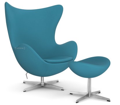 Egg Chair, Re-wool, 868 - Light aqua / natural, Satingebürstetes Aluminium, Mit Fußhocker