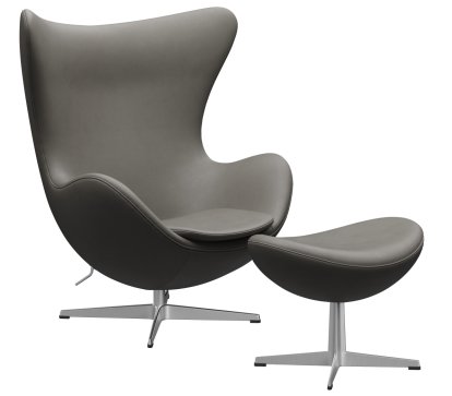 Egg Chair, Leder Essential, Light grey, Black, Mit Fußhocker