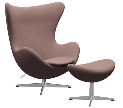 Egg Chair Re-wool|648 - Pale rose/natural|Satingebürstetes Aluminium|Mit Fußhocker
