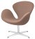 Die Prototypen der Fritz Hansen Sessel 'Schwan' und 'Ei' entstanden in Arne Jacobsens Garage nördlich von Kopenhagen und wurden mithilfe von Kunststoff gestaltet, da sich dieser als formbarer als Schichtholz erwies. Zeitgleich experimentierten andere Designer wie Charles Eames und Eero Saarinen mit Schichtholz und entwarfen ihre Möbel schließlich aus Fiberglass. Der Swan Chair entstand 1958 und galt damals als Innovation, da die Sitzschale ausschließlich kurvige Formen aufwies und sowohl Sitzfläche und Rückenlehne als auch Armlehnen beinhaltete. Die Struktur des Fritz Hansen Sessels besteht aus Stahl und ist mit Kaltschaum überzogen, die Rückenlehne wird aus mit Glasfasern verstärktem Polyurethan gefertigt. Einen kühlen Kontrast dazu bildet das sternförmige Fußkreuz aus Aluminium. Beim Bezug des Schwans kann aus einer breiten Vielfalt an Stoffen und Ledervarianten gewählt werden. Der Arne Jacobsen Designklassiker wird von Fritz Hansen seit jeher in Serie produziert.