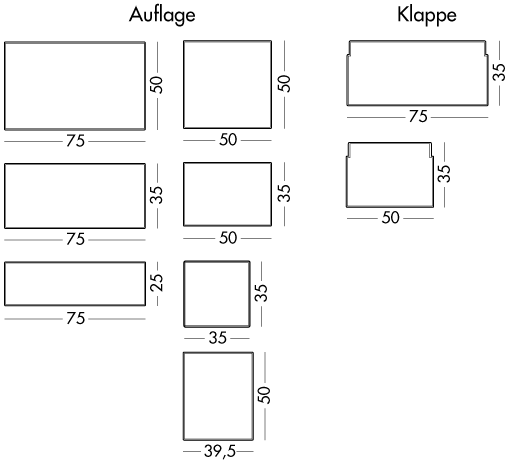 | Ausführungen | Wahlweise als Auflage on top, für die Innenseite der Türklappe oder das offene Fach des USM Möbels in verschiedenen Größen und Farben Weitere Auflagengrößen auf Anfrage möglich |