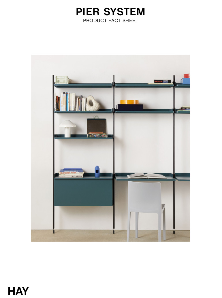 Mit den Pier System Add-ons lässt sich das Pier Regalsystem von Hay beliebig erweitern, kombinieren und umgestalten. Die Brüder Ronan & Erwan Bouroullec entwickelten das Pier Modulsystem im schlichten, modernen Design mit zahlreichen Gestaltungsmöglichkeiten.