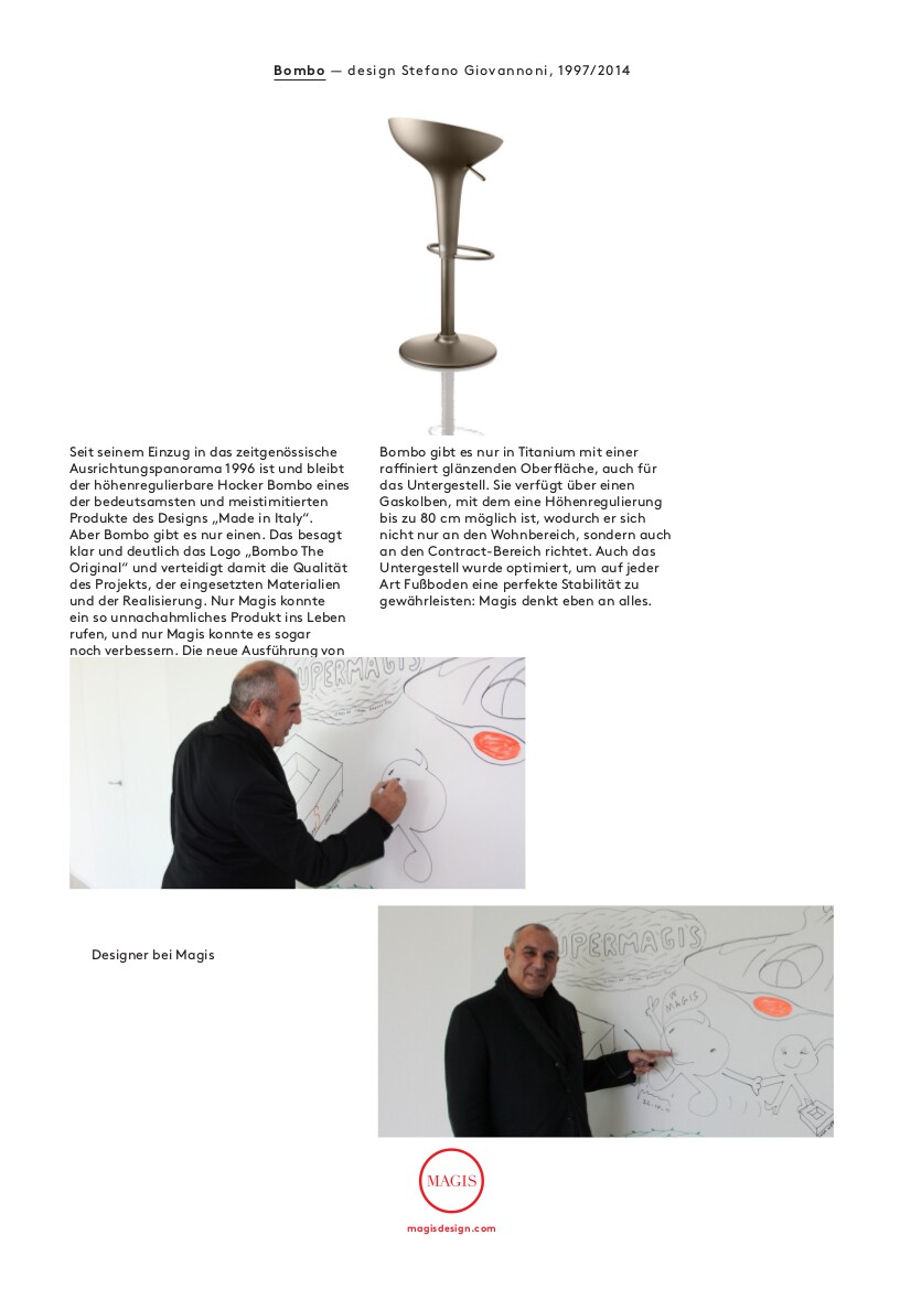 ...Aus vielen modernen Bars und Hotel-lobbys ist er einfach nicht mehr wegzudenken: der Bombo Hocker... Geschaffen von Stéfano Giovannoni für Magis ist Bombo ein funktionaler sowie ein durch sein Design bestechender Barhocker, der für jedes Ambiente die passende Farbe bietet...