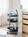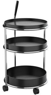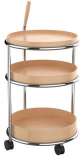 | Material | Tablare: Eichenfurnier, lackiert Gestell: Stahl, pulverbeschichtet oder verchromt Holzgriff: massive Eiche, lackiert Rollen: Kunststoff |