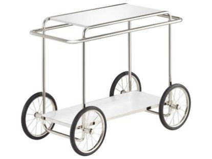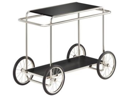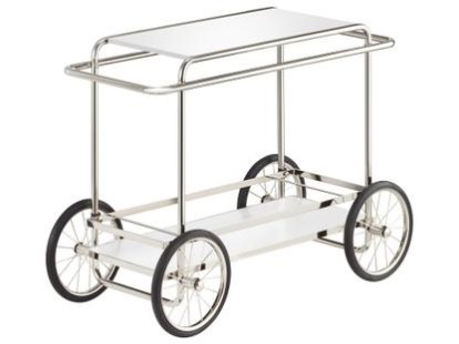 Der Konsolwagen M4R wurde vom deutschen Hersteller Tecta ganz im Stil der Bauhaus-Möbel designt, für die das Unternehmen bekannt ist. Mit seinem zeitlos klassischen Charme und den vier Gummireifen mit filigranen Speichen wirkt der Tecta Wagen wie ein liebevoller Helfer, der sich leicht in jedem beliebigen Raum platzieren lässt. An einem gebogenen Stahlrundlauf an der oberen Etage des Wagens lässt er sich problemlos schieben und dient so entweder als Servierwagen, oder schlicht als dekorativer Beistelltisch für Wohn- oder Esszimmer.