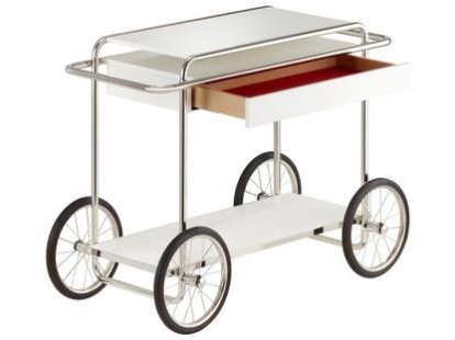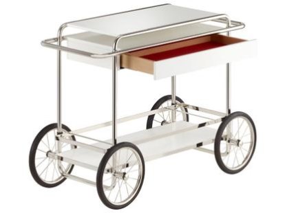 Die Bauhausliege F41-E und der Bauhaus-Couchtisch M40 rücken den Konsolwagen M4RS in den Kontext des Bauhaus-Designs, auch wenn es sich hier um einen zeitgenössischen Entwurf handelt. Man kann den Tecta Servierwagen M4RS also im Sinne einer Fortführung der Gestaltungslehre des Bauhaus’ interpretieren. Nach seiner Gründung durch Walter Gropius im Jahr 1916 in Weimar brach das Bauhaus mit allen damaligen Konventionen und setzte völlige neue Vorstellungen und Ideen in Gang. Die Bauhäusler waren der Überzeugung, dass man, indem man den Schwerpunkt auf die Funktionalität des Designs und die Möglichkeiten der Produktion legte, zeitlose Möbel und Alltagsgegenstände entwerfen könne. Aus diesem Grund wurde neben der Theorie vor allem auf Praxis Wert gelegt und die einzelnen Werkstätten und ihre jeweiligen Leiter spielten eine wichtige Rolle. Die Einführung des Stahlrohrs ab 1921 steht für einen Wendepunkt in der Gestaltungsauffassung des Bauhaus’, weil man jetzt auf Materialien setzte, die sich industriell und in Serie verarbeiten ließen und dem Bauhaus Möbel so eine größere Reichweite verliehen.