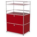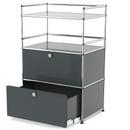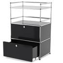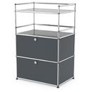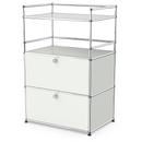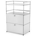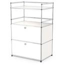 Dank der großen Stellfläche ist das USM Haller Bar Highboard ideal als Bar oder Coffee Corner nutzbar. Wahlweise mit zwei Klapptüren oder einer Klapptür und einer Schublade erhältlich, bietet das Highboard genügend Platz, um Tassen, Gläser und Flaschen elegant zu verstauen. Somit ist das Bar Highboard ist ein vielseitiges Möbelstück, das sich perfekt in Wohn-, Ess- oder Arbeitszimmer einfügt.
