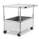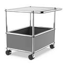 USM Haller Bartisch, Mit Stoßbügeln, USM mattsilber, Harte Rollen für Teppichboden