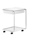 Der Oblique Rolltisch K3CR ist der Teil der von Tecta entworfenen Oblique-Serie. Markenzeichen der Reihe ist die dreidimensionale Rohrverformung mit der nach außen zeigenden Stahlrohrkante und den schräg („oblique“) einwärts gerichteten Seitenflächen. Der aufgrund der Rollen mobile Beistelltisch mit praktischer Schublade kann dort eingesetzt werden, wo gerade Bedarf an Ablagefläche oder Aufbewahrungsmöglichkeit besteht.