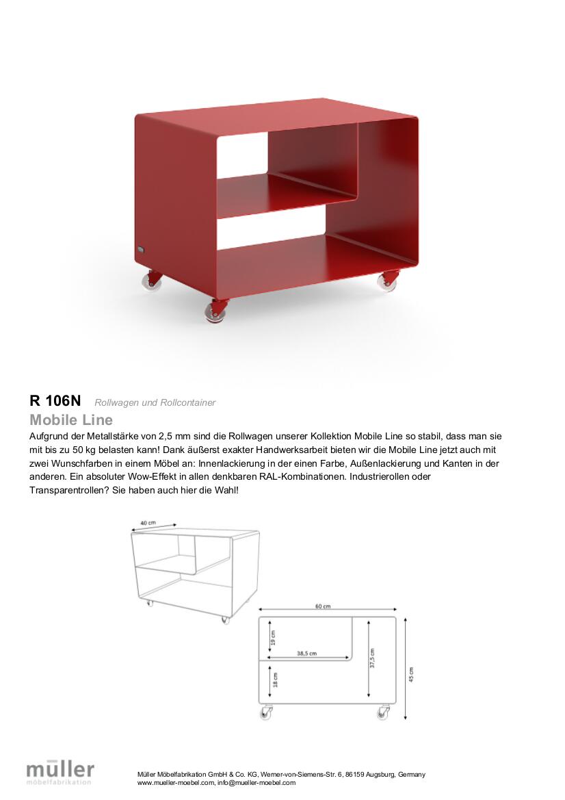| Funktion & Eigenschaften | Handgeschweißt aus 2,5 mm starkem Stahlblech Mit Ablagefach Belastbarkeit bis 50 kg Industrie- und Transparentrollen jeweils mit Feststeller hinten |