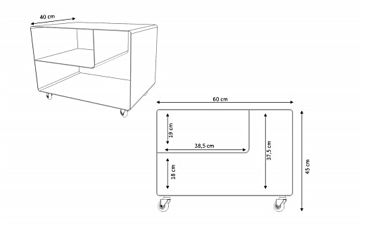 | Abmessungen | Außenmaße: H 45 x B 60 x T 40 cmInnenmaß Ablagefach: H 19 x B 38,5 cm |