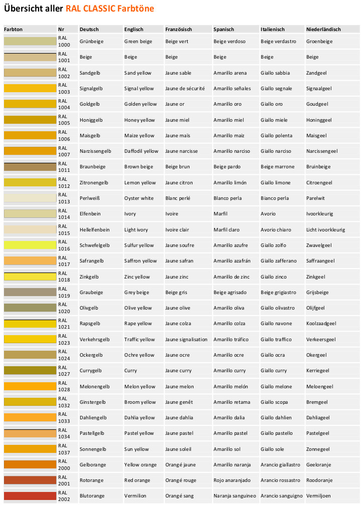 Sie können sich gern aus der 213 Farben umfassenden 'RAL Classic Serie' Ihre Wunschfarbe wählen und der Rollwagen wird individuell für Sie gefertigt! Nachfolgend finden Sie dazu eine Übersicht. Haben Sie sich für eine Farbvariante entschieden, wählen Sie bitte oben die Option 'Wunschfarbe' und teilen uns diese während des Bestellvorganges unter 'Ihre Mitteilung an uns' mit. Bei der Auswahl 'RAL Classic zweifarbig' benötigen wir zudem den Hinweis, welche Farbe sich Innen und welche sich Außen befinden soll. Wenn Sie Ihren Couchtisch zweifarbig in einem Metallic- und/oder Perlfarbton wünschen, dann ist dies mit einer persönlichen Beratung natürlich auch gern möglich.