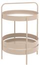| Material | Korpus: Stahl, pulverbeschichtet Obere Ablage: Klarglas, unterseitig lackiert Untere Ablage: MDF, lackiert |