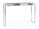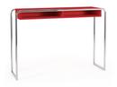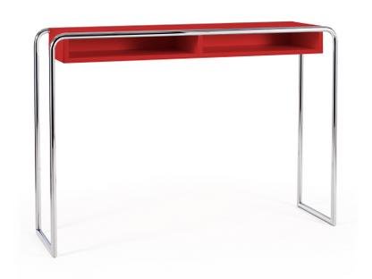 Der Beistelltisch B 108 steht ganz in der Tradition des deutschen Möbelunternehmens Thonet, das seine Erfolgsgeschichte mit der Erfindung des Wiener Kaffeehausstuhls begann, der eines der ersten funktionierenden Industrieprodukte der Welt wurde. Damals war die Technik des Bugholzformens besonders revolutionär und innovativ, doch der Hersteller ging mit der Zeit. So prägten vor allem das Bauhaus und einer seiner berühmtesten Emporkömmlinge, Marcel Breuer, den Stil und die Produktpalette des Möbelherstellers. Nun wurden nicht mehr nur Holzelemente gebogen, sondern vor allem Stahlrohr zu Stühlen, Tischen und Beistelltischen geformt. Die Produkte von Mart Stam, Marcel Breuer und Ludwig Mies van der Rohe erhielten Zuwachs durch das interne Thonet Design Team, aus dessen Feder auch der Entwurf zum B 108 stammt. Der Clou bei dem Beistelltisch besteht in seiner schmalen, eleganten Gestalt, wegen der er nahezu unbegrenzte Einsatzmöglichkeiten findet. Ob als dezenter Beistelltisch im Wohn- oder Essbereich, als reduzierte Stauraumlösung im Schlafzimmer oder als Ergänzung zur Garderobe im Flur, mit dem lackierten Holzkorpus bietet der Thonet B 108 eine Ablagefläche für allerlei Kleinigkeiten, die sich in jedem Haushalt ansammeln.