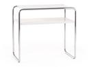 Der Stil der verchromten Stahlrohrgestellmöbel von Marcel Breuer wird unmittelbar mit dem Bauhaus Weimar in Verbindung gebracht, mit dem der Designer schon in den 20er Jahren zusammenarbeitete und dies auch weiterführte, nachdem es nach Dessau zog. Wegen seiner ungarisch-jüdischen Wurzeln wanderte Breuer noch vor dem Zweiten Weltkrieg erst nach Großbritannien, später in die USA aus, wo er engen Kontakt zu Walter Gropius pflegte. Gemeinsam gründeten sie unter anderem die Architekturfakultät der Harvard University sowie ein eigenes Designbüro. Breuer genoss vor allem als Innenarchitekt und Gestalter international ein hohes Ansehen und verwirklichte vor seinem Tod 1981 in New York zahlreiche Entwürfe aus Europa und den USA. Beliebt ist beispielsweise der Freischwinger, den er allerdings schon während seiner Zeit am Bauhaus Weimar entwickelte. Der hinterbeinlose Stuhl vereinigt Bequemlichkeit und industrielles Design in sich und wird ergänzt durch eine Serie an Beistelltischen, unter denen der B 9 ein Klassiker ist. Erweitert um einen Fachboden und etwas verlängert wird er zum B 9d/1, der sich hervorragend als Couch- oder Telefontisch eignet, aber auch im Wohn-, Ess- oder Flurbereich zahlreichen Dekoartikeln oder Wohnaccessoires einen eleganten Platz liefert.