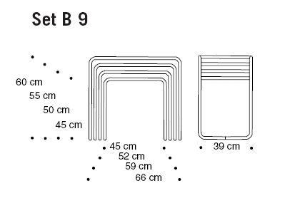 | Funktion & Eigenschaften | Die Tische lassen sich aufgrund ihrer verschiedenen Größen vollständig ineinander schieben. |