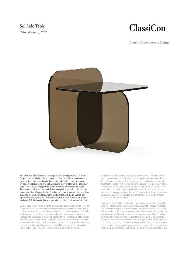 Mit seinen unterschiedlich angeordneten, farbig-transparenten Elementen besticht der Sol Side Table von ClassiCon nicht nur durch eine skulpturale Eleganz, die Glasflächen bieten Raum je nach Blickwinkel vor allem noble Lichtakzente und Schattenspiele.