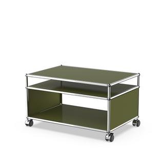 USM Haller Beistelltisch mit Aufsatz und Rollen, Olivgrün RAL 6003, Hart für Teppichboden