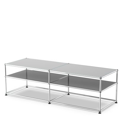 Das USM Möbelbausystem Haller bietet die Möglichkeit, ein Möbel nach individuellen Bedürfnissen zu gestalten und jederzeit umzubauen oder zu erweitern. Dabei gehören die beliebten Beistelltische zwar eher zu den Kleinmöbeln, stehen aber den Sideboards und Regalen in der Gestaltungsvielfalt in nichts nach. So ist der USM Haller Beistelltisch Typ I wahlweise mit Metall-, Glas- oder lackierten Glastablaren erhältlich. Durch die offene Struktur wirkt der Beistelltisch elegant und zeitlos zugleich und bietet dennoch genügend Ablagefläche für Bücher, Vasen und Gläser.