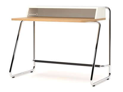 | Material | Tischplatte: Buche gebeizt, Eiche lackiert oder geölt, Nussbaum geölt oder Thonet Dur mit geölter Eiche- oder Nussbaumkante Korpusaufsatz: Buche gebeizt, MDF decklackiert, Eiche lackiert oder geölt, Nussbaum geölt oder Thonet Dur mit geölter Eiche- oder Nussbaumkante Gestell: Stahlrohr, verchromt, tiefschwarz oder reinweiß pulverbeschichtet Gleiter: Kunststoff, schwarz |