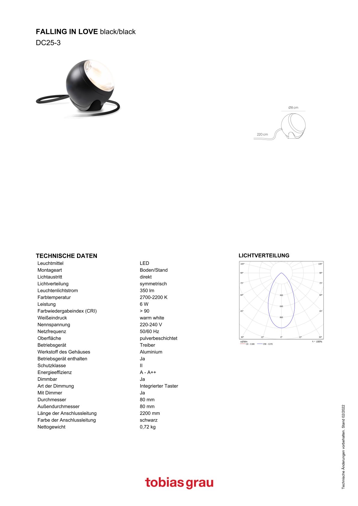| Funktion & Eigenschaften | 6 Watt LED Farbtemperatur: 2700-1300 K Leuchtenlichtstrom: 350 lm Stecker Typ C |