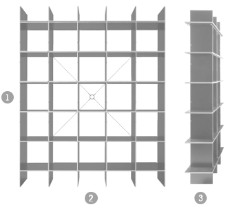 Für das Regalsystem FNP gibt es zur Stabilisierung freistehender Regale das Spannset. Die Montage eines Spannsets bedarf eines Regals von 3 x 3 Fächern (je h: 35 cm b: 33 cm).