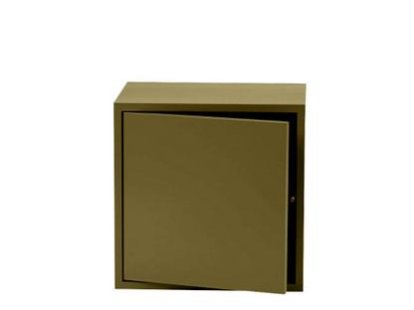 Stacked Regal System, M (43,6 x 43,6 x 35 cm), Mit Tür, Braungrün