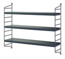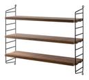 String Pocket Wandregal, Fachböden Walnuss, Seitenwände schwarz