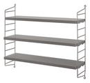 Mit ihrem Sieg bei einem schwedischen Buchregalwettbewerb 1949 gelang es Kajsa und Nisse Strinning, auf ihren String Entwurf aufmerksam zu machen – noch im selben Jahr wurde die Firma mit identischem Namen gegründet und verkaufte das Regal tausendfach. Seit 2005 ist die Wandregal-Variante des Klassikers erhältlich. String Pocket ist kleiner, aber mindestens genauso anpassungsfähig und praktikabel wie sein großer Bruder.