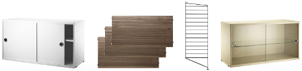 | Nachhaltigkeit | Die Maße des String-Regals sind seit 1949 unverändert, sodass jedes Regal unabhängig vom Alter immer wieder einfach umgestaltet und erweitert werden kann. |