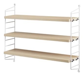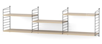 | Funktion & Eigenschaften | Belastbares maximal Gewicht: 25 kg über das Möbelstück verteilt Passend für alle String Wand-/Bodenleiter-Systeme mit einer Tiefe von 30 cm Das String Regalsystem ist individuell konfigurierbar. Kombinieren Sie nach Belieben Seitenwände mit entsprechenden Regalböden und weiteren Zubehörteilen. Gestalten Sie digital mit dem String Regal Konfigurator Ihr individuelles String Regal und kaufen Sie alle Einzelteile anschließend mit einem Klick online bei smow. Jetzt String Konfigurator öffnen! |