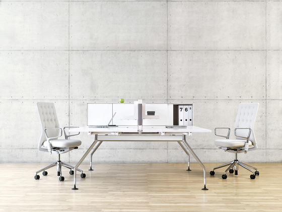 Ergonomische Alleskönner wie der Bürodrehstuhl ID Mesh von Vitra verfügen darüber hinaus über Zusatzfunktionen wie Lordosenstütze und Sitztiefenverstellung.