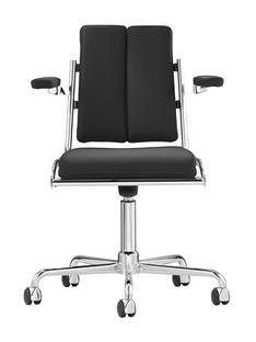 Der Tecta Bürodrehstuhl D12 überzeugt mit seiner besonders weichen Polsterung der Sitzfläche und Armlehnen. Die zweiteilige Rückenlehne passt sich dem Oberkörper optimal an, die Kippmechanik fördert ein dynamisches Sitzen. Der D12 ist ein echter Tecta Klassiker, wurde in den frühen 90er Jahren entwickelt und macht besonders in Kombination mit einem Bauhaus Schreibtisch eine gute Figur.
