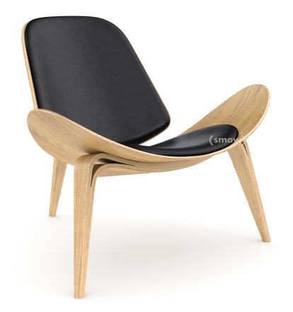 CH07 Shell Stuhl, Eiche Weißöl, Leder schwarz