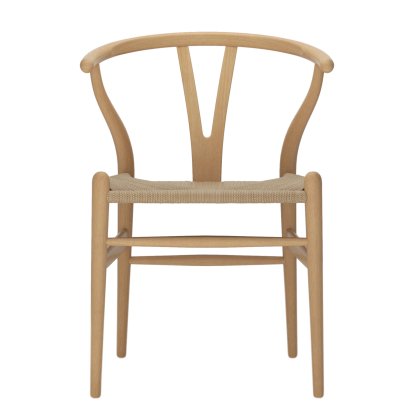 Hergestellt wird der CH24 Wishbone Chair seit seiner Entstehung im Jahr 1949 durch das dänische Unternehmen Carl Hansen & Søn. Ursprünglich in Odense produziert, wurde 2003 in Aarup eine modernere Produktionsanlage gebaut. Dort werden die CH24 Stühle in einem aufwendigen Produktionsprozess gefertigt, wobei sämtliche aus massivem Holz bestehenden Teile von Hand geschliffen und zusammengesetzt werden. Auch die Sitzfläche von Carl Hansens Wishbone Chair wird in langwieriger Handarbeit aus jeweils über 120 Metern Papiergarn geflochten. Das spezielle Material zeichnet sich durch enorme Widerstandsfähigkeit und Belastbarkeit aus und hat zudem eine angenehme Haptik sowie einen natürlichen Farbton. Neben den hohen Ansprüchen an die Qualität der Materialien und deren Nachhaltigkeit gehört vor allem die Verbindung von traditionellem Tischlerhandwerk und modernster Technik zu Carl Hansen & Søns wichtigsten Grundsätzen und garantiert die hohe Qualität und Langlebigkeit von Carl Hansens Y Stuhl.