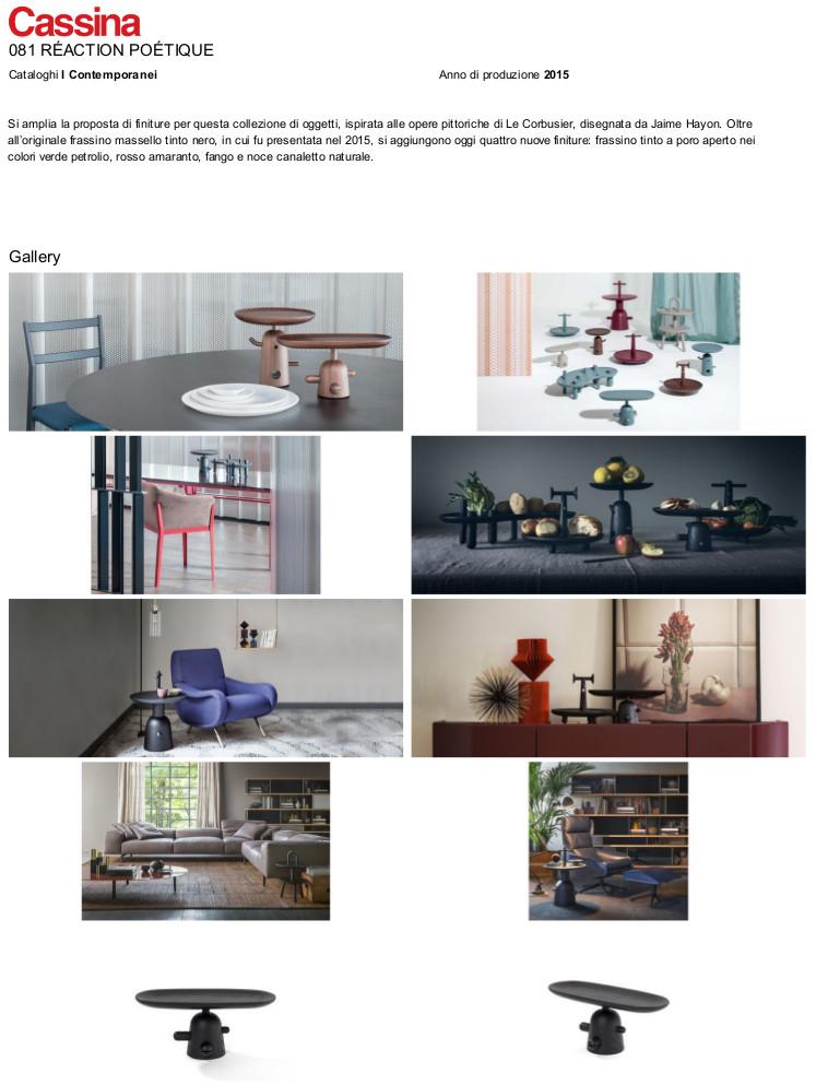 Bei seiner Accessoire-Serie 081 Réaction Poétique für Cassina ließ sich der Spanier Jaime Hayon von den Gemälden Le Corbusiers inspirieren und schuf so seine ganz eigene Reihe an Objekten. Die 2015 präsentierten Cassina Beistelltische, Tischdekorationen sowie das 081 Tablett kommen in edler schwarz gebeizter Esche daher und sind eine interessante Ergänzung für das Mobiliar eines jeden Design- und Corbusier-Fans.
