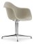 Eames Plastic Armchair DAL, Weiß RE, Mit Sitzpolster, Warmgrey / moorbraun, Aluminium poliert, Neue Sitzhöhe (43,0 cm)