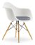 Eames Plastic Armchair DAW Weiß RE|Mit Sitzpolster|Dunkelblau / elfenbein|Standardhöhe - 43 cm|Esche honigfarben