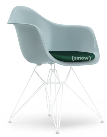 Eames Plastic Armchair RE DAR, Eisgrau, Mit Sitzpolster, Mint / forest, Standardhöhe - 43 cm, Beschichtet weiß