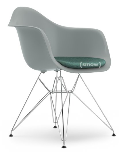 Eames Plastic Armchair RE DAR Hellgrau|Mit Sitzpolster|Eisblau / elfenbein|Standardhöhe - 43 cm|Verchromt
