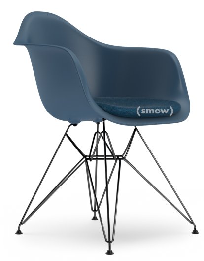 Eames Plastic Armchair RE DAR Meerblau|Mit Sitzpolster|Meerblau / dunkelgrau|Standardhöhe - 43 cm|Beschichtet basic dark