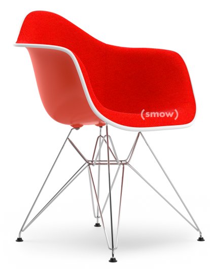 Eames Plastic Armchair RE DAR Rot (poppy red)|Mit Vollpolsterung|Koralle / Poppy red|Standardhöhe - 43 cm|Verchromt