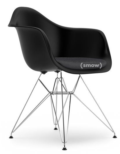 ...Neben den Untergestellen aus Metall (DAX), Holz (DAW) und Drahtverstrebung (DAR) sowie dem Drehstuhl (PACC) und Schaukelstuhl (RAR), die wir auch heute noch kennen, gab es damals eine Version mit einem Sockel als Untergestell - einer niedrigen Loungevariante, die unserer Meinung nach einen Platz in unserer Tablet- und Smartphonegesellschaft haben sollte - und eine charmante Barhocker/Atelierstuhl-Version mit hohen Holzbeinen...