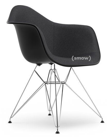 Eames Plastic Armchair RE DAR, Tiefschwarz, Mit Vollpolsterung, Dunkelgrau, Standardhöhe - 43 cm, Verchromt